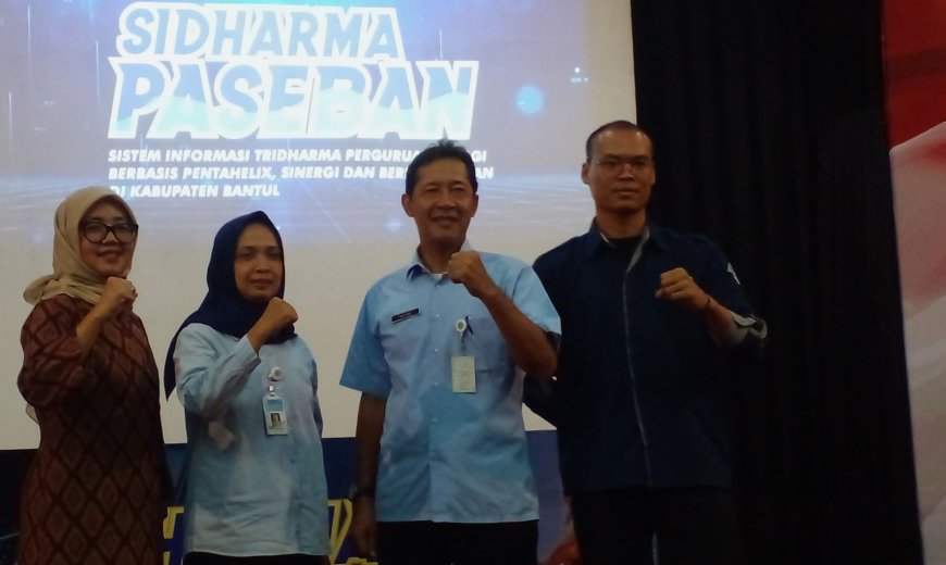 KORANBERNAS.ID, BANTUL -- Bupati Bantul Abdul Halim Muslih diwakili Asisten Bidang Pemerintahan dan Kesra Setda Bantul, Hermawan Setiaji, meluncurkan aplikasi Sidharma Paseban (Sistem Informasi Tridharma Perguruan Tinggi Berbasis Pentahelix, Sinergi dan Berkelanjutan) di Kabupaten Bantul, Selasa (8/10/2025), di Gedung Induk Kompleks Parasamya.