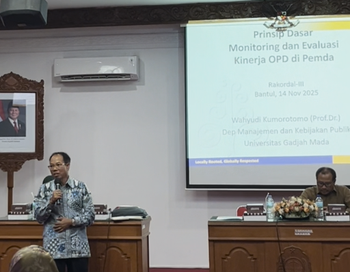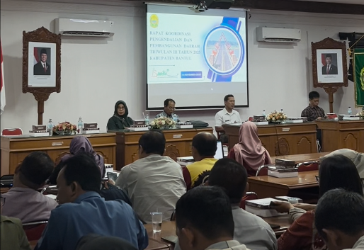 Pada hari Jumat (14/11), Pemerintah Kabupaten Bantul melalui Bappeda Kabupaten Bantul menggelar Rapat Koordinasi Pengendalian Pembangunan Daerah Kabupaten Bantul Triwulan III Tahun Anggaran 2025 di Gedung Induk Mandhala Sabha Lantai III Kompleks Parasamya. Kegiatan yang dipimpin langsung oleh Bapak Sekda, Agus Budiraharja, S.KM., M.Kes ini dihadiri oleh seluruh Kepala Perangkat Daerah dan Panewu se-Kabupaten Bantul serta menghadirkan narasumber, Prof. Dr. Wahyudi Kumorotomo dari FISIPOL UGM.